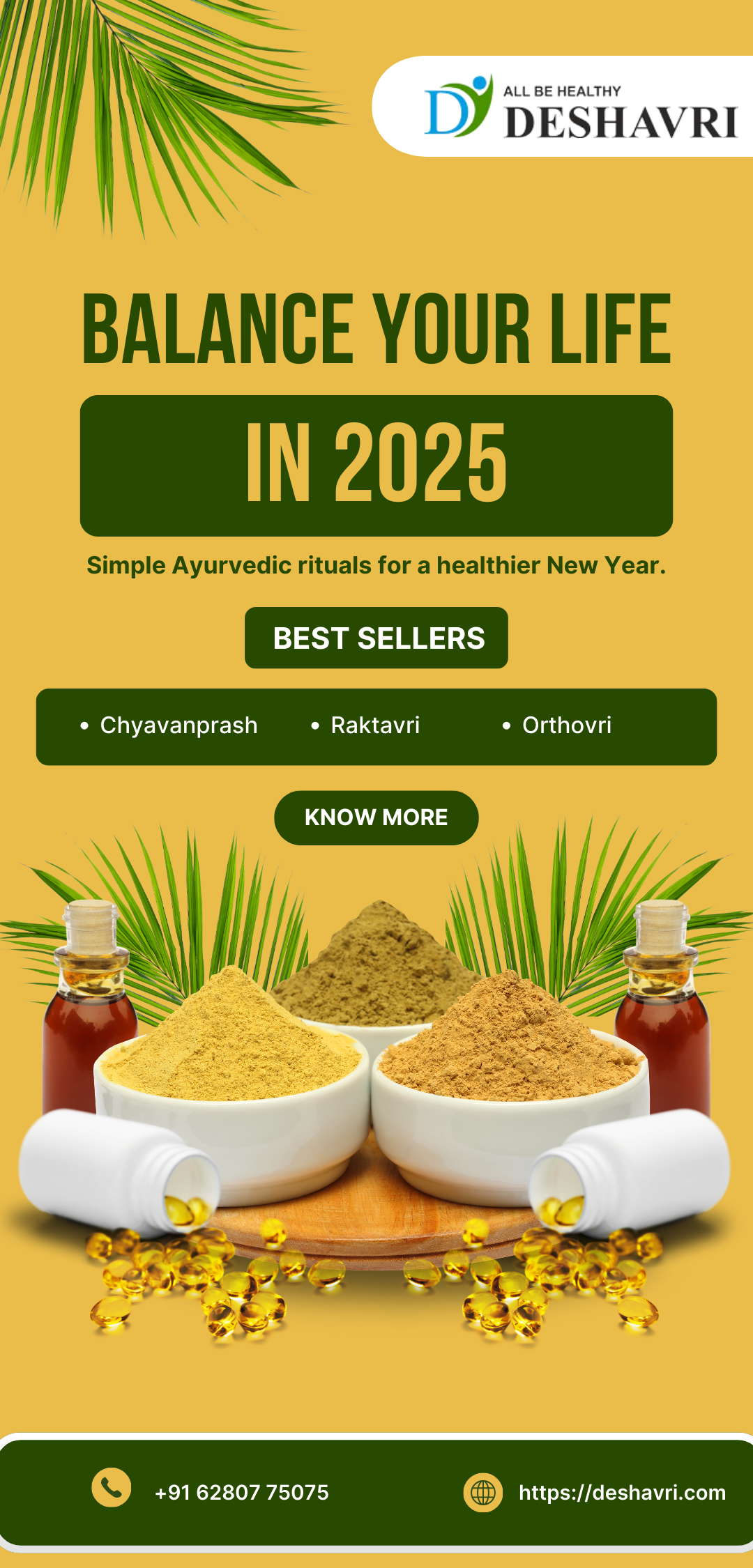 Deshavri is your trusted partner in holistic wellness, rooted in the ancient wisdom of Ayurveda. We craft pure, herbal formulations using nature’s finest ingredients to promote balance, vitality, and overall health. Guided by centuries-old traditions, our remedies are designed to support your body, mind, and soul. At Deshavri, quality and authenticity are our top priorities, ensuring safe and effective natural care. We believe in a life in harmony with nature, where wellness is nurtured every day. Experience the timeless power of Ayurveda with Deshavri