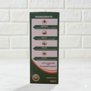 Deshavri Plativri Plus is a unique Ayurvedic formulation designed to support the body’s natural defense mechanisms, especially during viral infections like dengue. This powerful syrup helps to boost immunity and increase platelet count, which can be compromised during such illnesses. Formulated with a blend of four researched herbs—Papaya, Giloy, Tulsi, and Neem—it offers a natural way to aid recovery and restore vitality. Packed in a convenient syrup bottle, it provides a holistic approach to wellness.